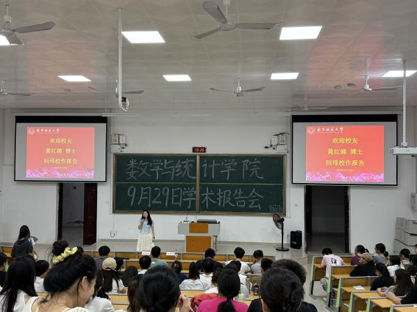 邀请上海大学黄红娣博士回母校做了主题为《国内外本硕博学习和生活的感悟》的专题报告会,分享其跨越中国、加拿大、美国的丰富求学与科研经历,本次报告由数统院韦扬江副院长主持。数统院的本科生与研究生参加了报告会。