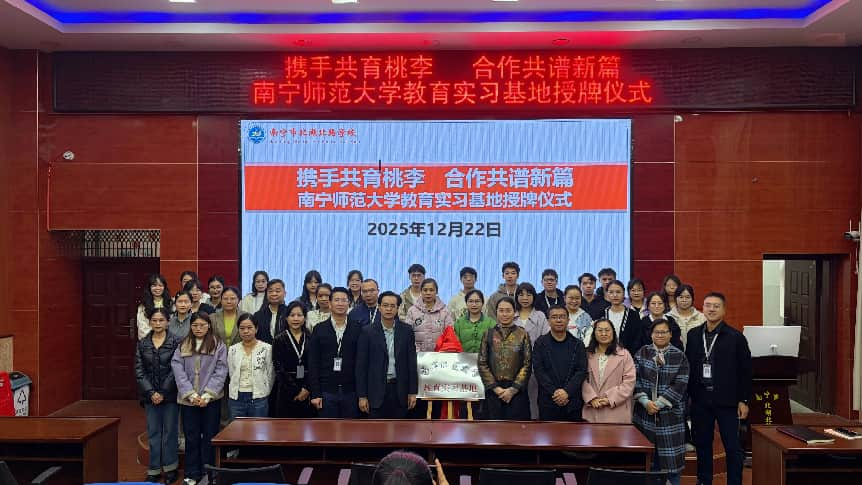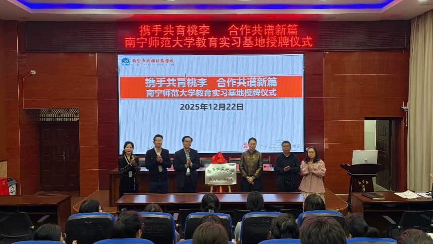 随后,韦扬江副院长代表我校向北湖北路学校授予“南宁师范大学教育实习基地”牌匾,双方领导共同揭牌,标志着两校合作进入实质性阶段。