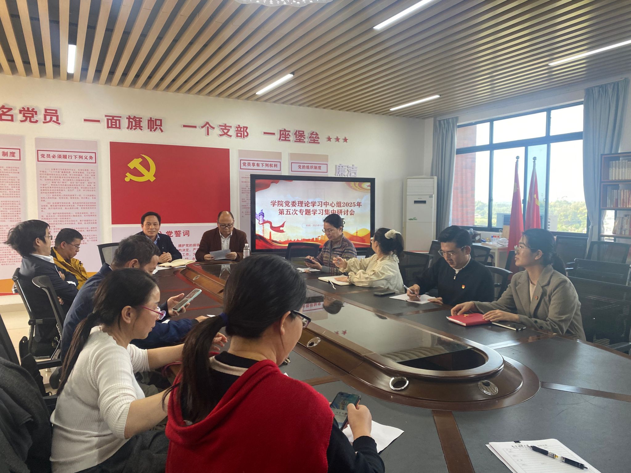 党委理论学习中心组2025年第五次专题学习集中研讨会在武鸣校区数统楼A501召开。会议由学院党委书记余敢才同志主持,理论学习中心组成员参加,办公室主任、各党支部书记列席会议。