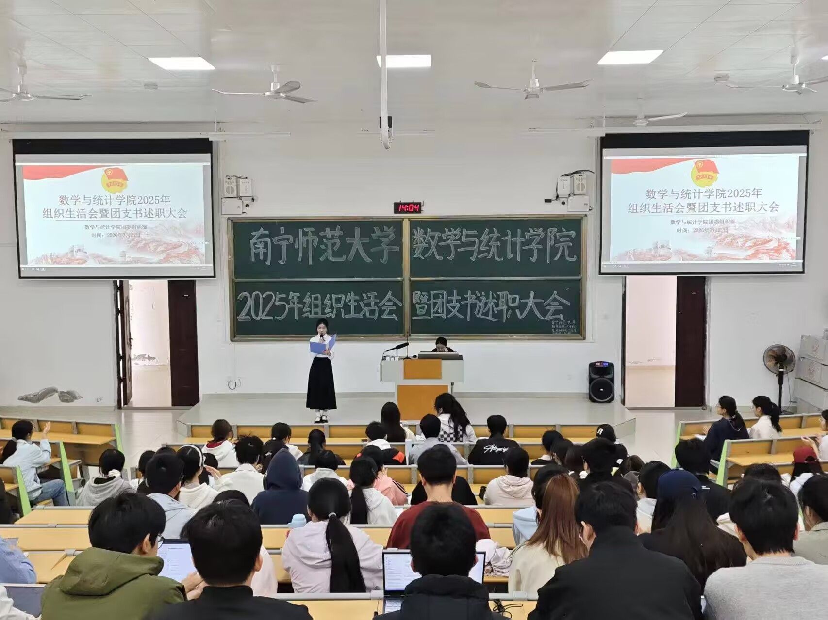 在团支书述职环节,各团支书依次上台汇报。各位团支书紧紧围绕班级团建设、思想引领等重点工作展开总结,认真梳理工作情况,深刻反思自身不足,并结合实际明确改进方向,提出切实可行的工作举措与未来规划。随后,方安琪老师对各团支书述职情况进行点评,指出部分团支书述职内容过于单一的问题,并结合不同年级团支部特点提出针对性改进建议,同时对学院共青团工作和全体团干部寄予殷切期望,鼓励大家立足岗位、积极进取,不断提升团支部的行动力和凝聚力。会议最后,全体团员重温入团誓词,铭记初心使命。