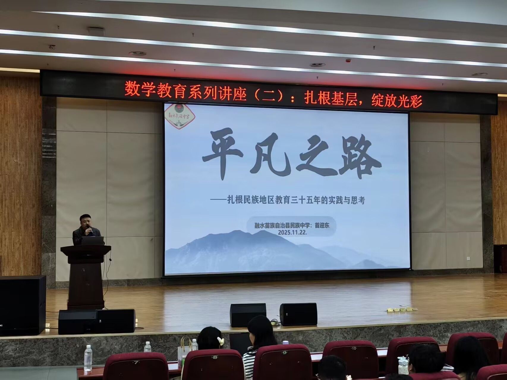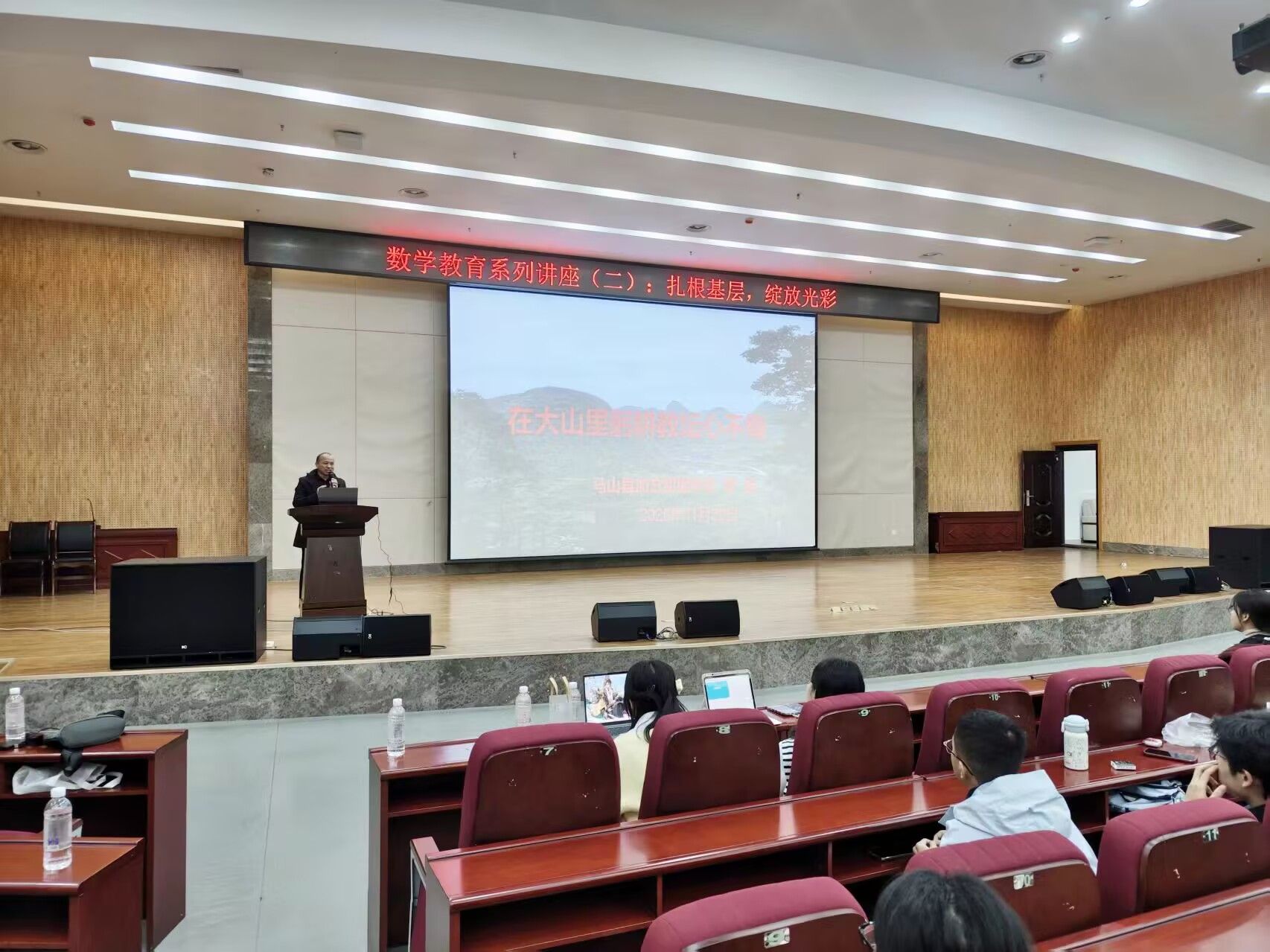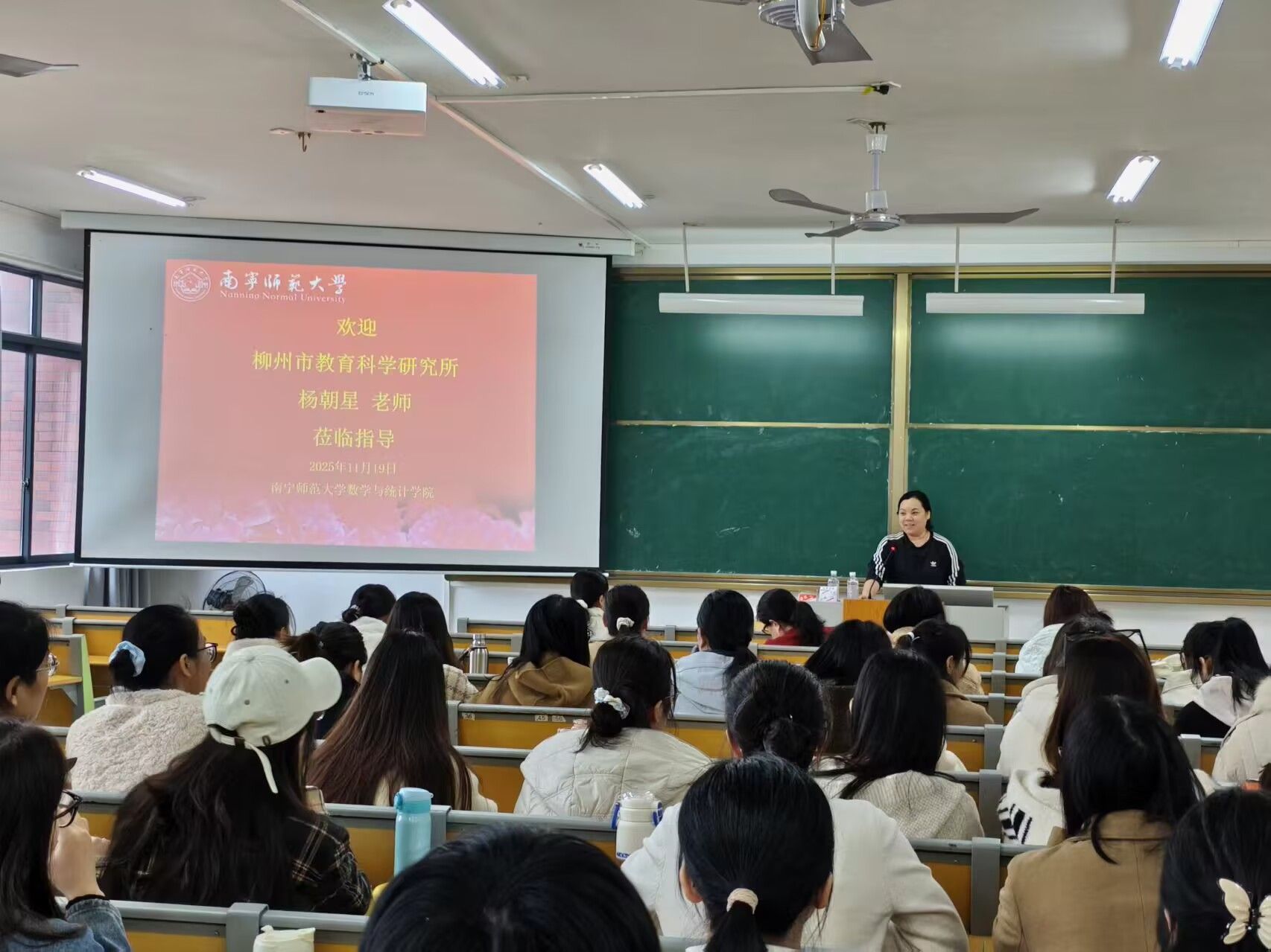 在11月举办了数学教育系列讲座,先后邀请了广西师范大学二级教授周莹、柳州市高中数学教研员杨朝星、融水苗族自治县民族中学校长首迎东、桂林市兴安县教学研究室主任陈玲、马山县加方初级中学校长罗同、全州高中副校长成进金等一线教师,为数学与应用数学专业的本科生和学科教学(数学)研究生开展了数学教育系列讲座。