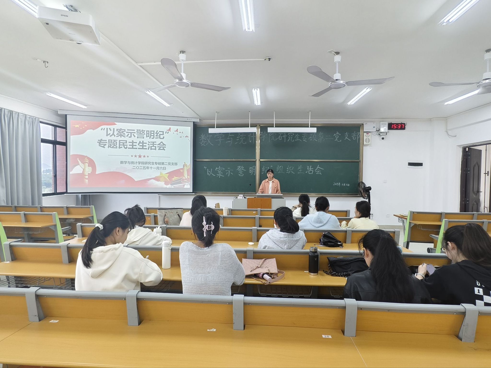 研究生专硕第二党支部以“以案示警明纪”为主题,召开专题组织生活会。本次组织生活会由党支部书记马坚华同志主持,支部全体党员参会,通过案例警示、对照检查、批评与自我批评,推动全面从严治党向支部纵深延伸。